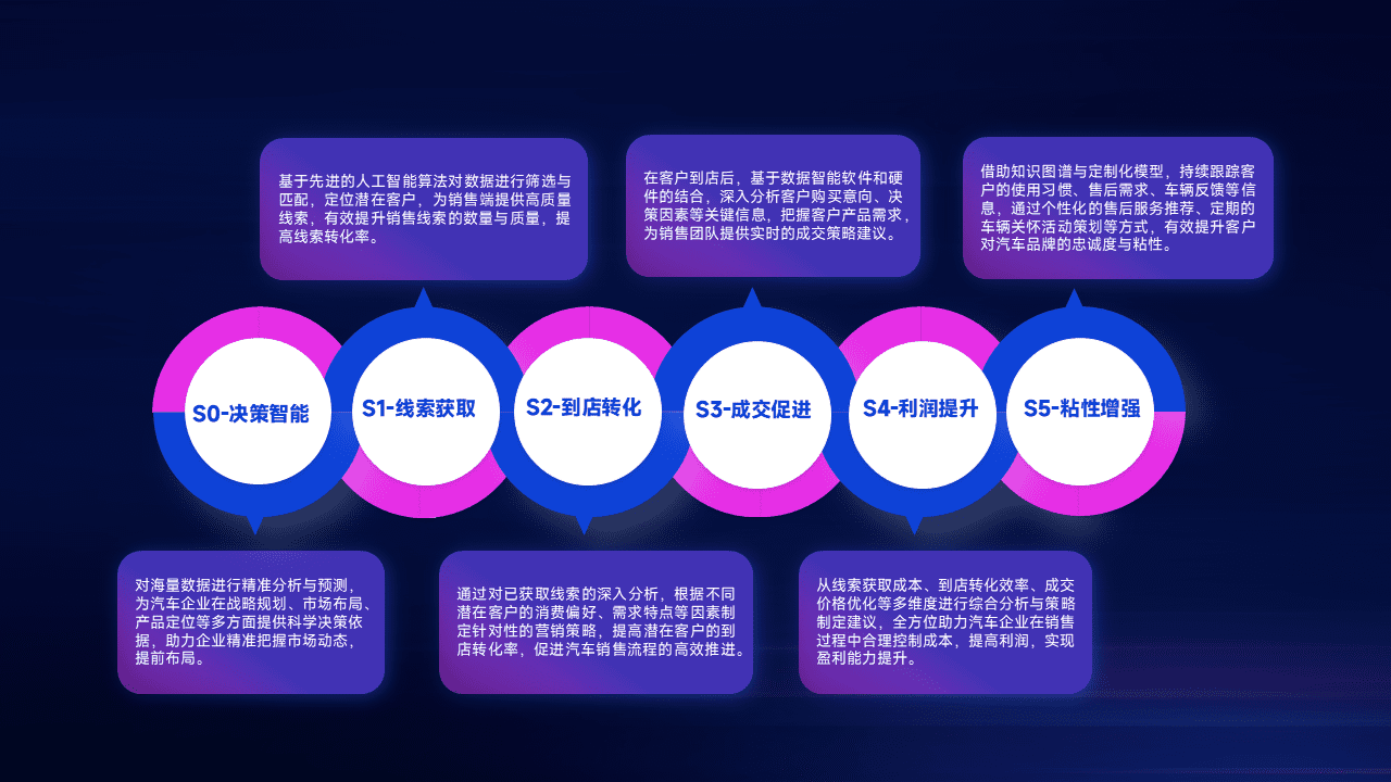 通过拓宽潜在客户来源、、优化线索分配并提高到店转化率,,,以增强销售效率。。。。同时,,,利用线索数据不断优化分析模型,,,,有效提升转化率,,扩大营销影响力。。
